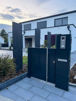 Wir fertigen, liefern und montieren vom großen Schiebetor mit elektrischem Antrieb bis zum filigranen Gartentürchen. Selbstverständlich können wir auch moderne Design-Zaunanlagen, um für die gewünschte Privatsphäre zu sorgen. Verzinkt oder Edelstahl, in Kombination mit Stein, Glas oder Holz. Kein Problem für uns - fordern Sie einfach Ihr persönliches Angebot an.